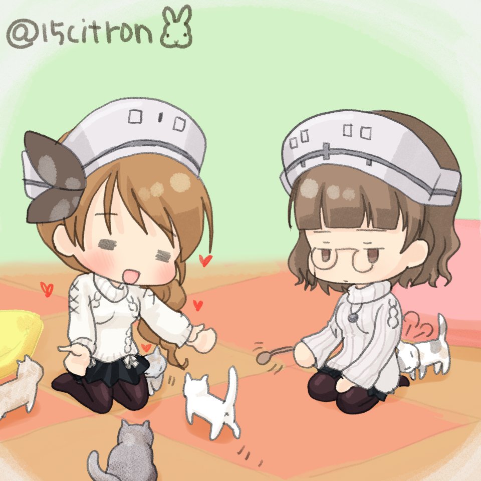 #艦これ版深夜の真剣お絵描き60分一本勝負 #艦これ版真剣お絵描き60分一本勝負_20220222 #ローマ #猫の日イラスト 猫カフェはこりごりです。姉さんにばかり懐くし、やたら頭突きする猫もいるし。