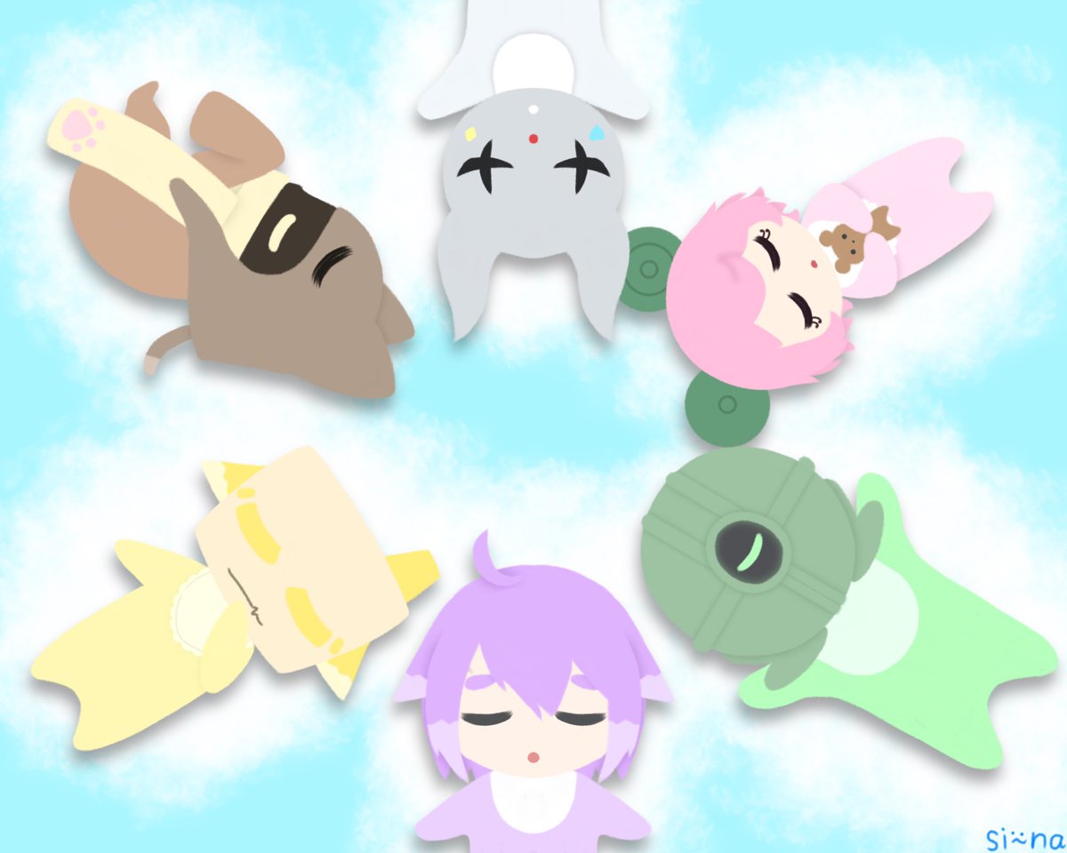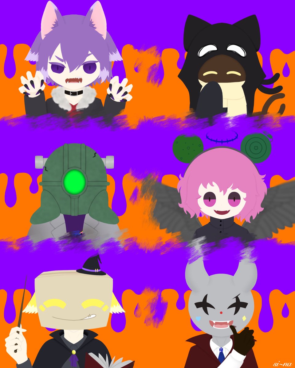 今年は6人全員描けました😭💕💕 今回は全員座ってる姿で統一しました_( ˙꒳˙ _ )チョコン この人はこの座り方が似合うかな?って考えながら描きました! 慣れてない描き方なのでとても時間かかったため背景がとても雑なので来年は背景も頑張ります💪( ˙꒳˙ ) #bintrollFA