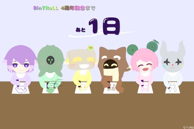 記念日前日アンカーしーなゴールまでバトン繋ぎます=͟͟͞͞( ᐛ) 🐶🤖📦🐱🐻🐰 世界でいちばんはっぴーな6人グループ ✨BinTRoLL4周年まであと1日✨ 💜💚💛🤎💖💙 #びんとろ4周年カウントダウンリレー #bintrollFA