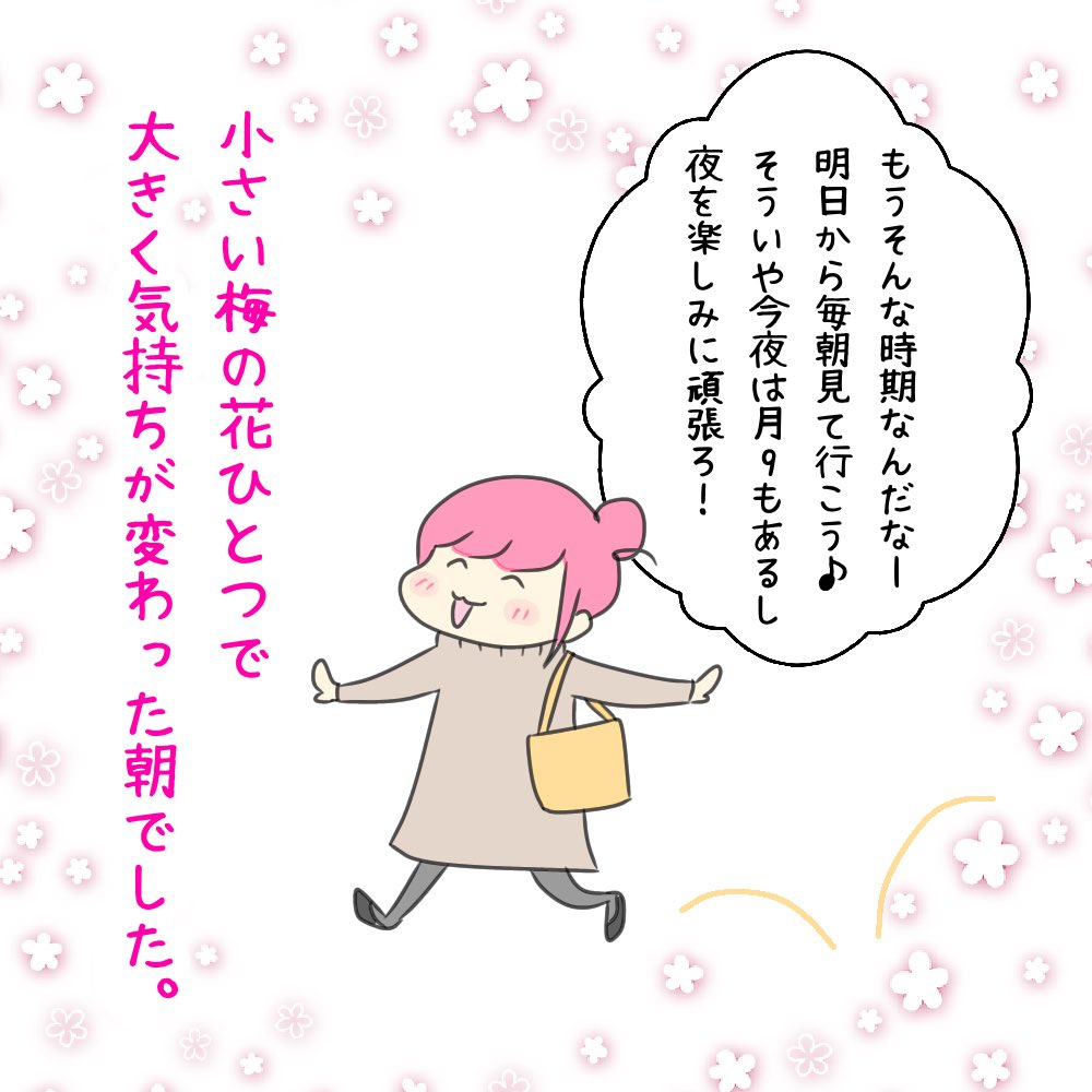 梅の花が一番すっき🌸 そして月9やっぱ面白かったー!来週も楽しみ🙌 #コミックエッセイ #エッセイ #エッセイ漫画 #イラスト初心者 #絵日記 #漫画が読めるハッシュタグ #絵描きさんと繋がりたい #絵柄が好みって人にフォローされたい #4コマ漫画