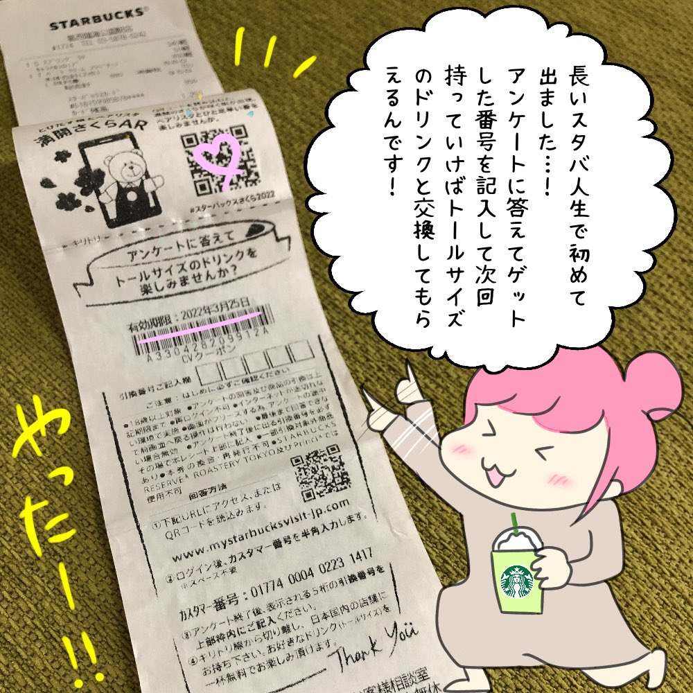 スタバの当たりレシート✨ キターーー(♡∀♡)ーーー!!! #コミックエッセイ #エッセイ #エッセイ漫画 #イラスト初心者 #絵日記 #漫画が読めるハッシュタグ #絵描きさんと繋がりたい #絵柄が好みって人にフォローされたい #スタバの当たりレシート