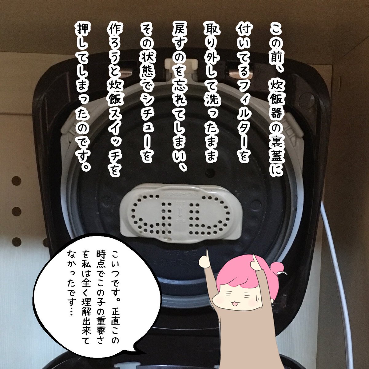 初めて「噴火」をというものを身近に感じた出来事でした🌋 #コミックエッセイ #エッセイ #エッセイ漫画 #イラスト初心者 #絵日記 #漫画が読めるハッシュタグ #絵描きさんと繋がりたい #絵柄が好みって人にフォローされたい #4コマ漫画 #炊飯器レシピ