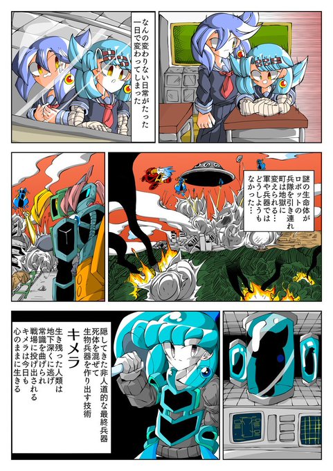 pixiv.net/artworks/10440… #ウェポングッズ #漫画 生物兵器とロボットが戦争してるお話です! 続きはリンクから