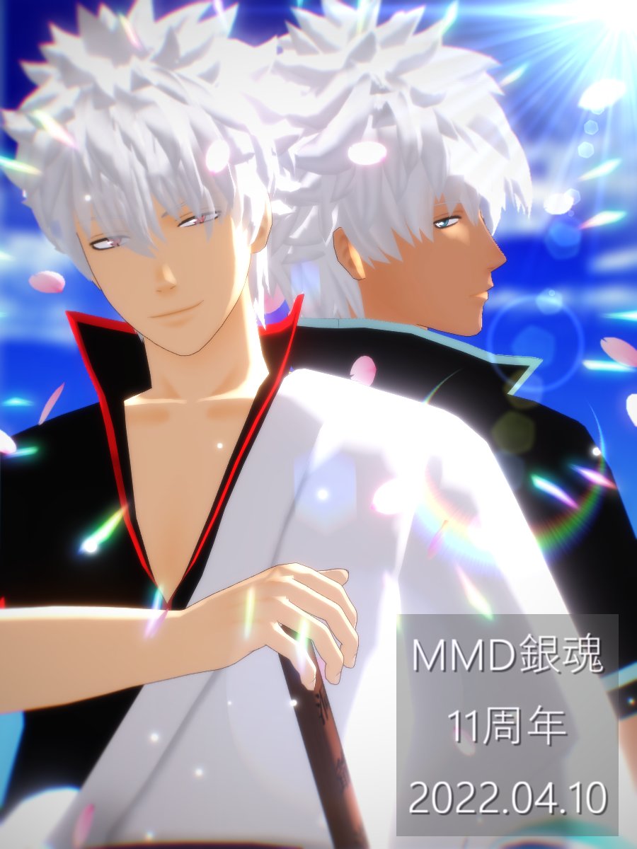悲しい出来事が沢山あった年に 抜けるような青空の下で踊る二人に強く惹かれて MMDを知りました 今もMMDerを続けていられる事 心の支えになってくれた事に感謝 MMD銀魂11周年おめでとうございます そして、aokana式坂田銀時モデル配布11周年おめでとうございます #MMD銀魂11周年 #MMD銀魂かわら版