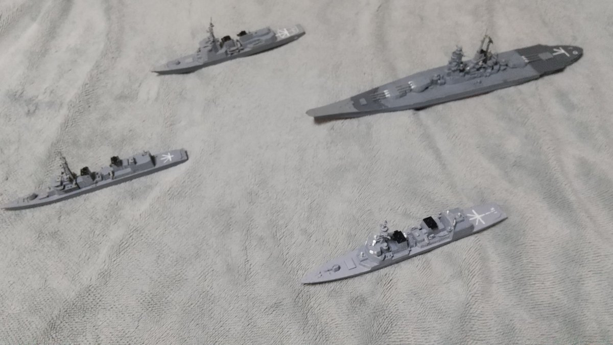 #今月作ったプラモ晒そうぜ ウルトラホーク1号 ※α、β、γの分離可能型 “むらさめ“の発射機に、“たかなみ“の砲を載せた護衛艦“ねのひ“、アイオワ級から改造したヘリ搭載型火力支援艦“はりま“