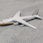 #これを見た人は塗装前と塗装後を貼れ 昔、1/700スケールの飛行機が入ってる世界の翼と言う半完成食玩があって、その中のひとつにアエロフロート仕様の貨物機 #An124Ruslan があったので、それをアントノフ航空貨物仕様に塗り替えただけ 白はアクリル塗料で、黄と青はガンダムマーカーペンを使用