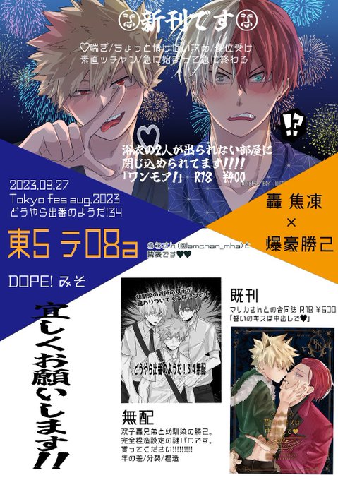 8.27 TOKYO FES.aug 2023 どうやら出番のようだ!34 お品書きです✊✊💓 虎の穴→ec.toranoana.jp/joshi_r/ec/ite… (現在在庫0です。イベント後追納するか手持ち在庫にするか検討してるのでご入用の方は再販ボタンお願いします🙇♀️💕) sample→ pixiv.net/artworks/11019…