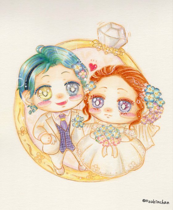 ※フロ監♀+10(監督生顔あり、未来捏造) 「紫陽花~ウェディング💐~」 🦐「……//////」 🦈「俺の花嫁さん…❤(ヤバッ…めっちゃ…綺麗…かわいぃ///)」 幸せだねっ❤️💒 #ツイステファンアート #twstファンアート #twstプラス
