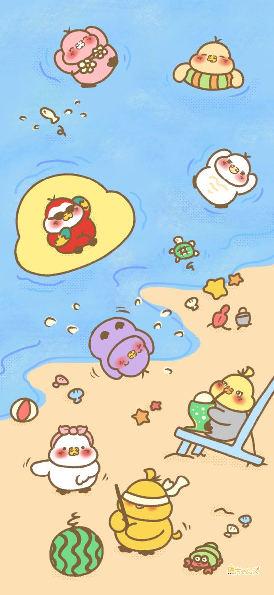 7月の壁紙🐥🌞🌴🌊🛟💞 いただいたリクエストをいくつか組み合わせて描いてみました☺️ 沢山使ってもらえるとうれピ〜です!!(個人の範囲内で) リクエストありがとうございまピた🐥 #鳥ちゃんズ #鳥ちゃんズフリーイラスト #壁紙配布