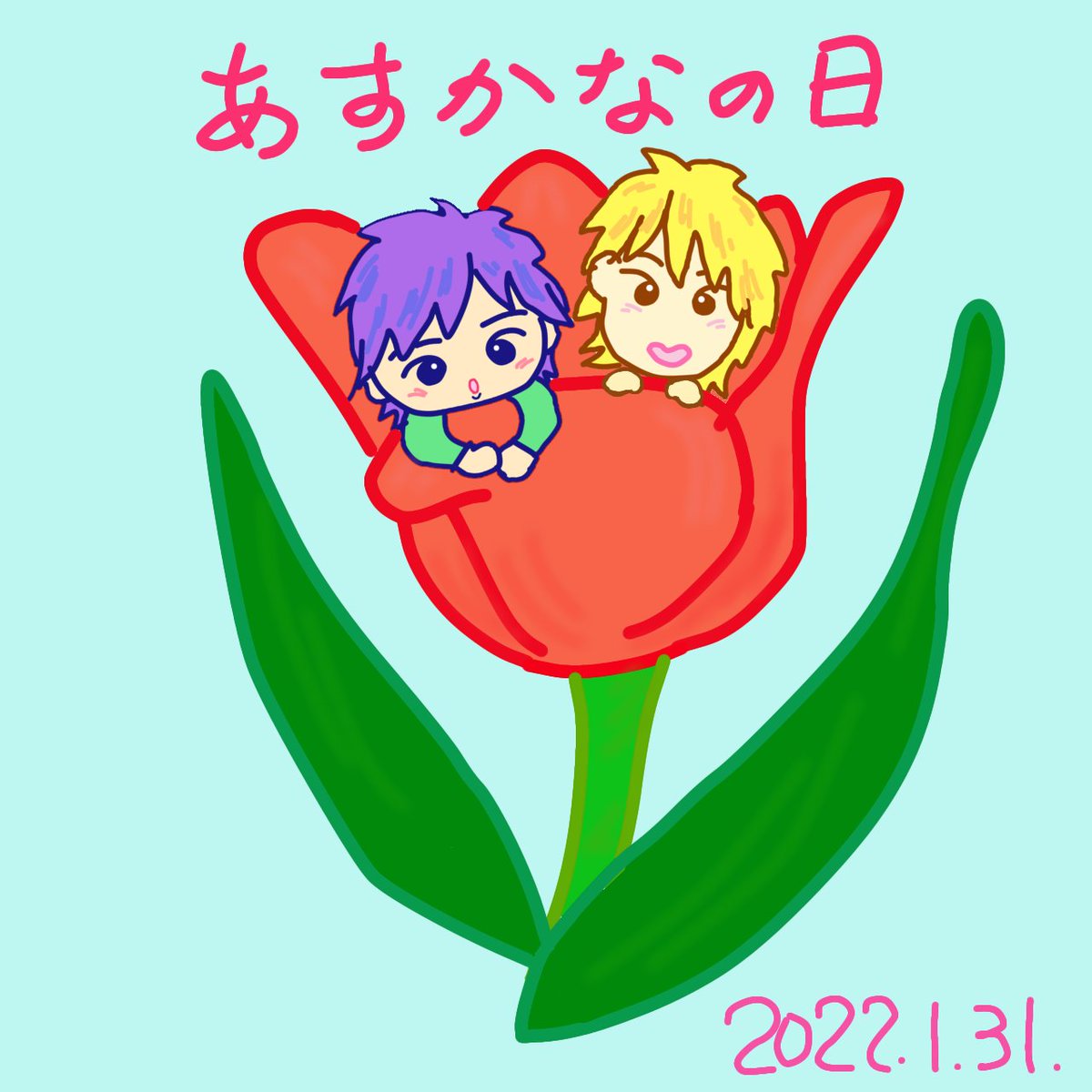 2022年最初のあすかなの日おめでとう〜❤️💙 今日の誕生花は…赤いチューリップ🌷 花言葉は『愛の告白』『真実の愛』🥰💓 愛情たっぷりんラブラブな2人にぴったりね💕 #あすかなアート #あすかなと姫ピメはずっと一緒だよ @ichigoya_k_513 @kaido_a_1201