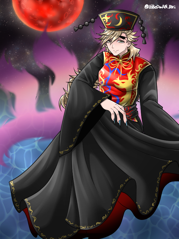 25 89 #いろんな童磨が見れるタグ ※クロスオーバー 東方projectの純狐衣装を着た童磨🦊(似合うと思ってつい…) 21/03/08 00:28