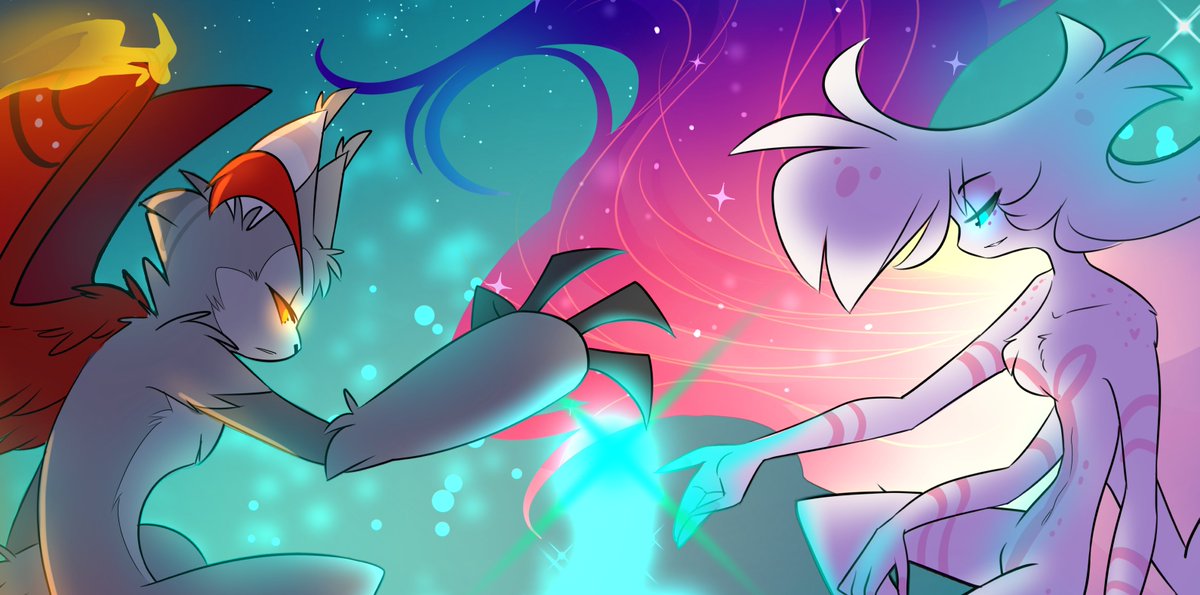 Joined spirits 💫✨ #HazbinHotel #HazbinHotelAU #huskerdust #angelhusk #AngelDust #hazbinhotelhusk