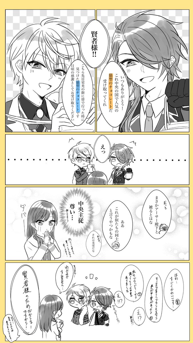 14 47 #まほやく_FA バレンタインに中央主従違うところで同じことしてるのあまりにも愛おしいなっていう ⚠️アーサーカドストネタバレ有 女賢者いますが恋愛要素ないです 21/02/19 22:12