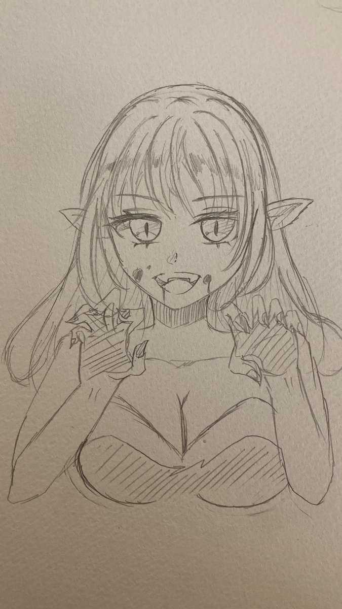 0 7 久しぶりのアナログイラスト🎨✍ ヴァンパイアちゃん #イラスト 22/10/10 19:49
