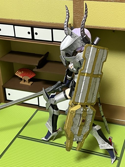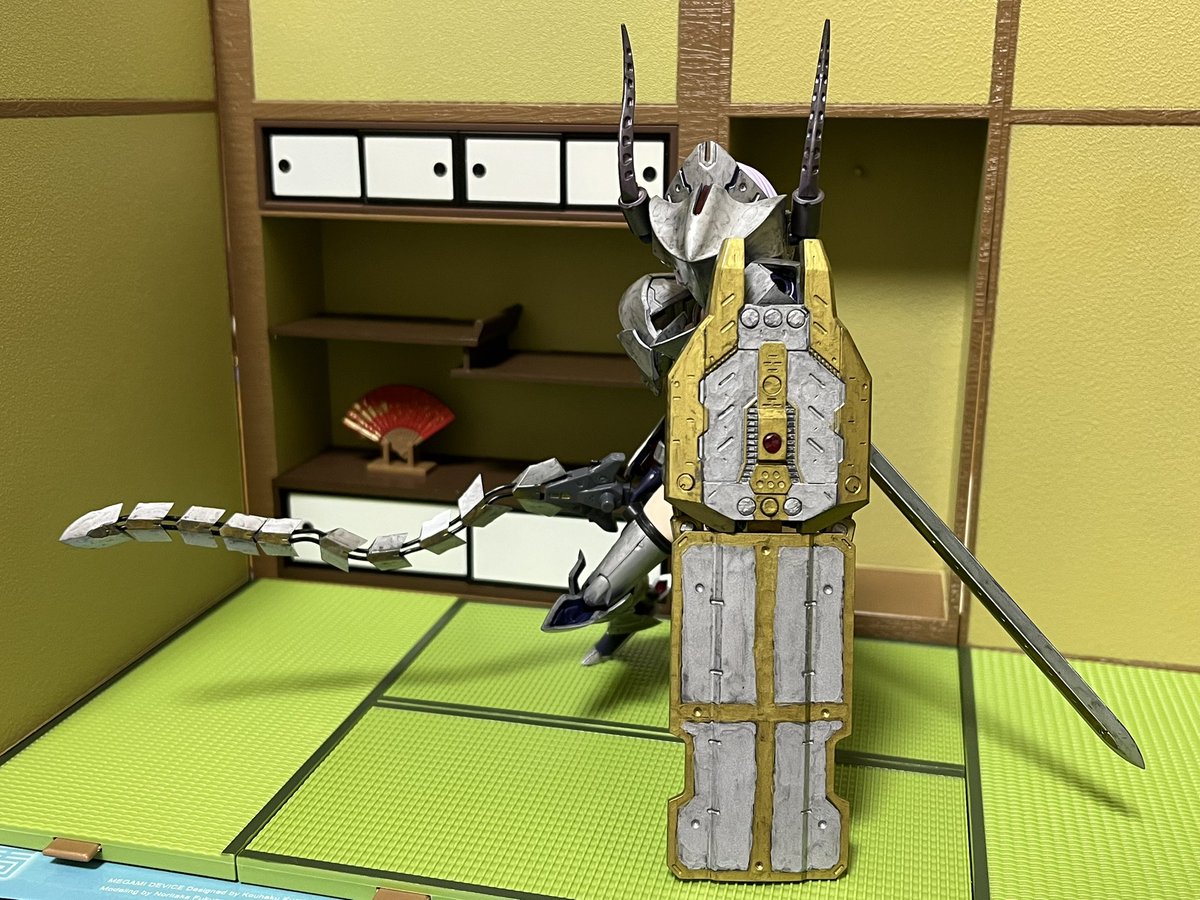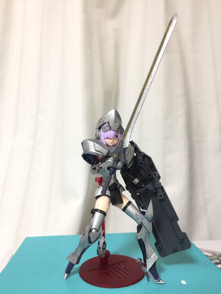 盾の裏に剣と隠し武器を入れて手だけで支えると自重で落ちるので最低限に 取り回しが良くなった騎士エクスキュー #メガミデバイス