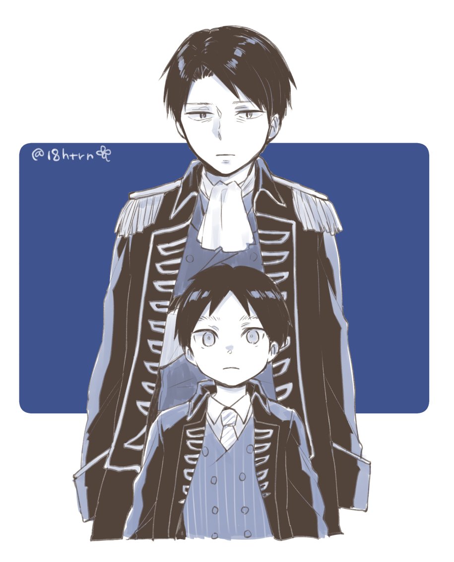 #エアスケブ ひつじさん(@hituji_memem)へ 「兵団服のリヴァエレ」 兵団服すごく久々に描きました!ヒラヒラも、今となっては懐かしい…
