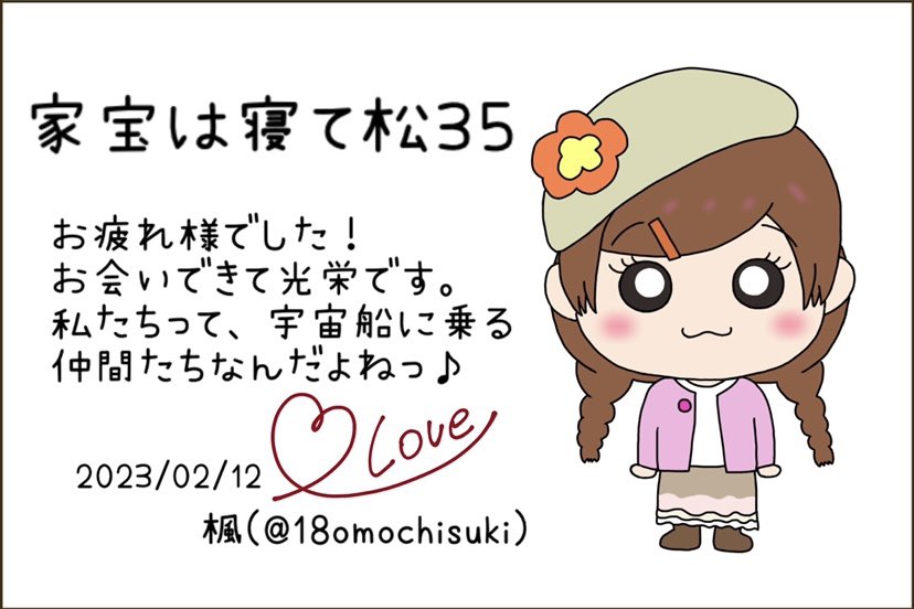 8 48 家宝でスペースにお越しくださった方 トド子に手を振ってくださった方 アフター御一緒して頂いた強火の材の民 ありがとうございました🙌💕 めっちゃ楽しかった〜!!! ※cos 23/02/12 19:46