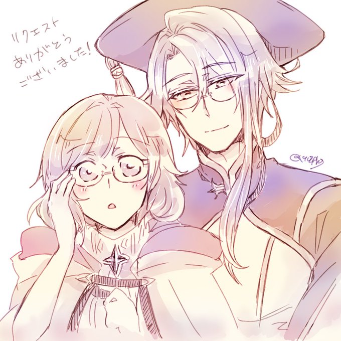 こいななのエアスケブで頂いていた エストさんとエマちゃん(エスエマ?)です リクエストありがとうございました👓 #ymkr男女CP
