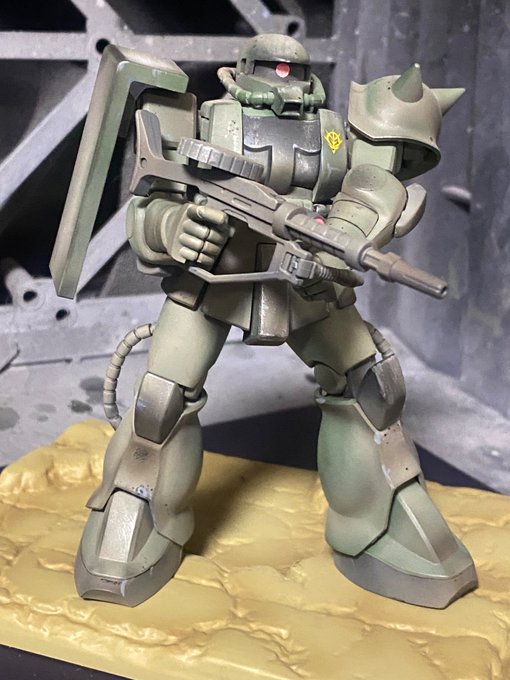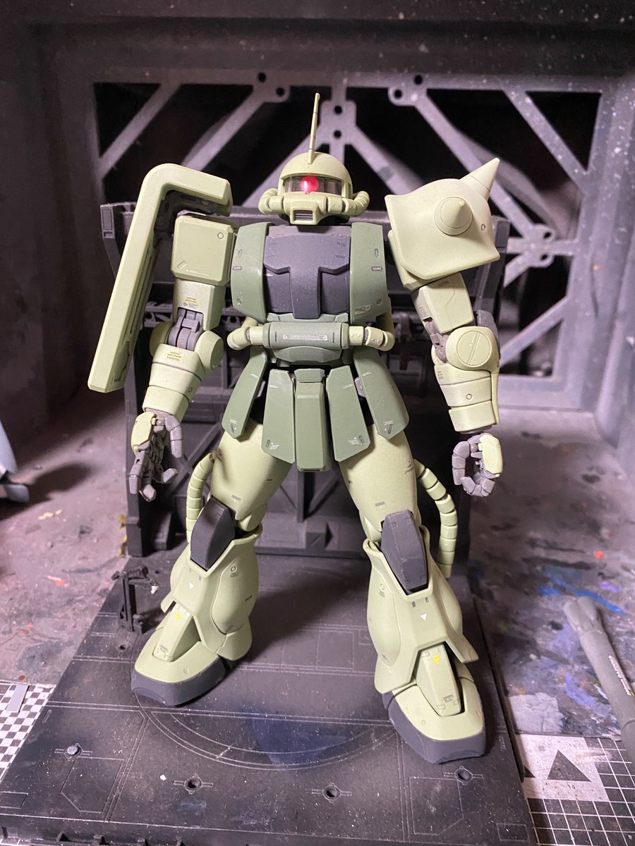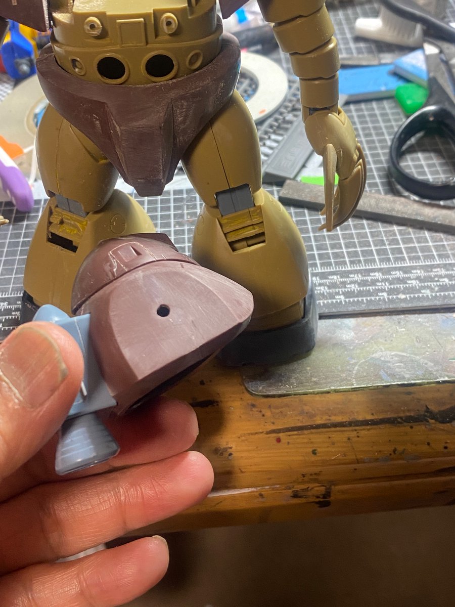 ザクスナイパー 合わせ目消し完了。今回はウェザリング仕上げをするので、膝、肩の後ハメ加工は省きました。 #ガンプラ #ガンプラ好きと繋がりたい #ガンプラの画像を貼るとRTされると聞いて #合わせ目消し #後ハメ加工