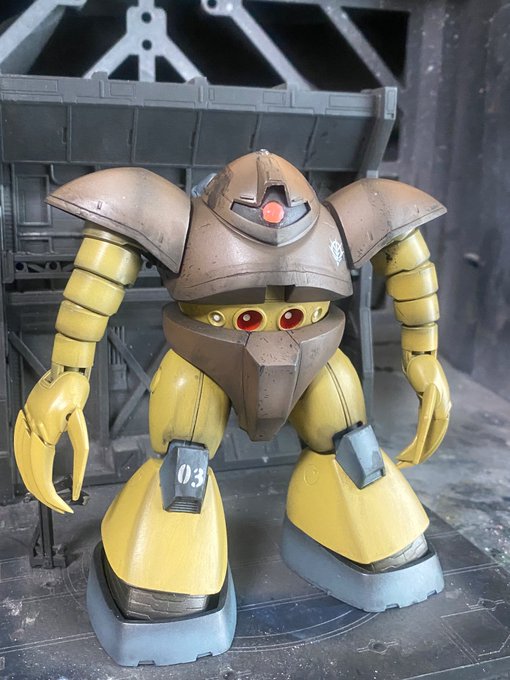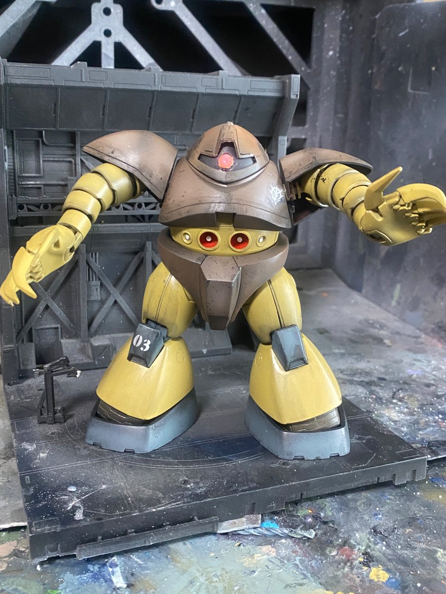ウェザリング仕上げ ズゴック完成 キリがないので完成とします。ウェザリングカラー、ウェザリングペイスト、ウェザリングマスターを使っています。 #ガンプラは自由だ #ガンプラの画像を貼るとRTされると聞いて #ガンプラ好きと繋がりたい