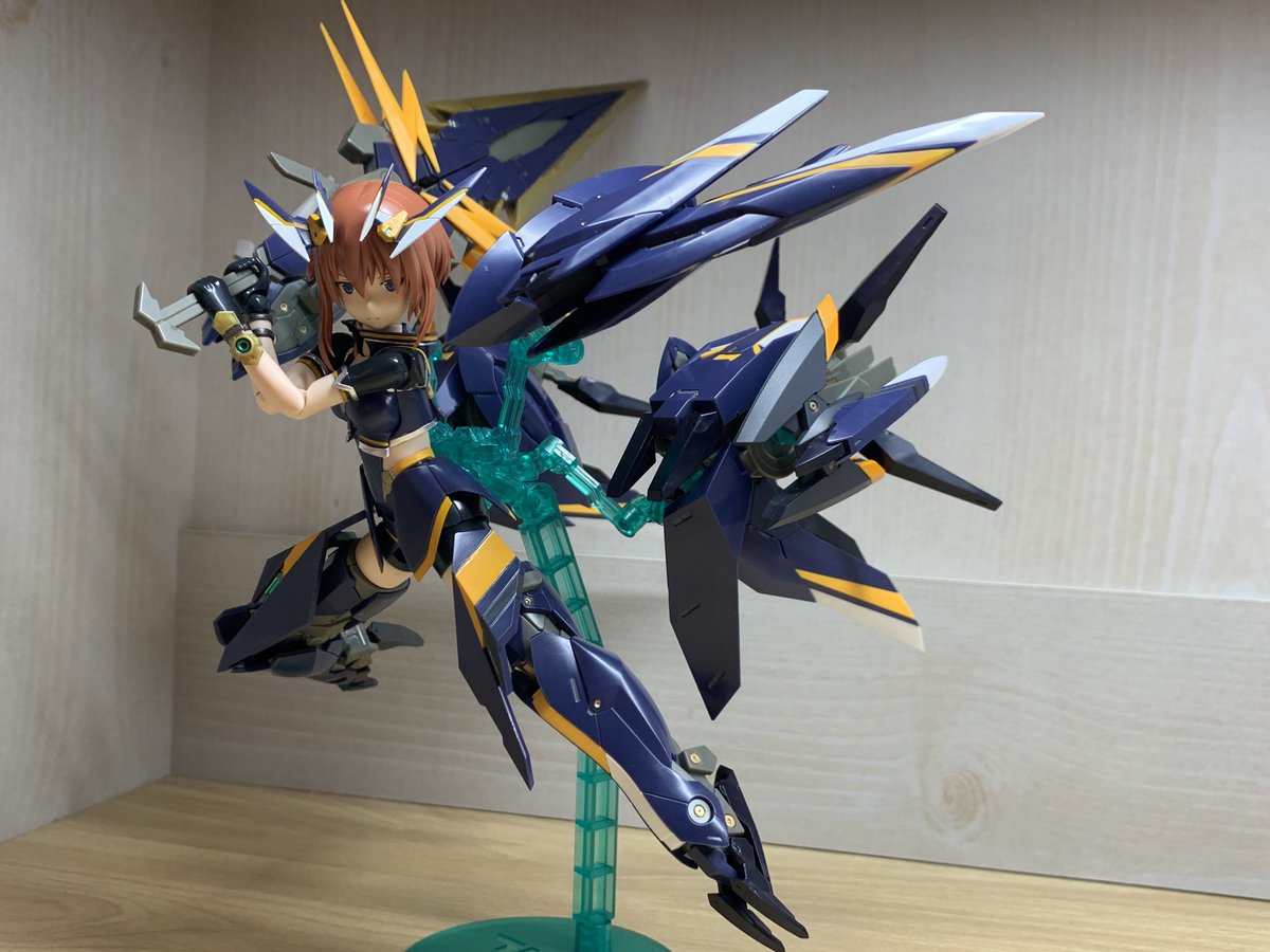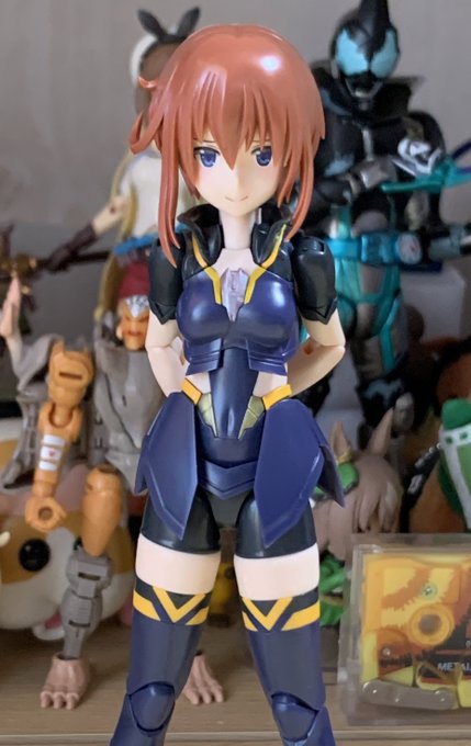 自画自賛で大変申し訳ないですが、このポージングめっちゃ良くないですか?(´∀`)(めっちゃ自画自賛) アイコンにしてるくらい気に入ってしまってるんですよ。(´∀`) #メガミデバイス #金潟すぐみ