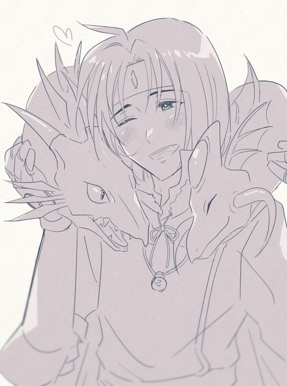 アシュトンー 1時間でギョロウルまで入れるともう、私にはラフな線画までが限界でした…本当、もっと早く綺麗に描けるようになりたい… でも何とかいちゃいちゃさせられて良かったです!(ポジティブ)1人と2匹で何だかんだずっと一緒にいてほしい…!!✨ #スターオーシャン真剣お絵描き60分一本勝負
