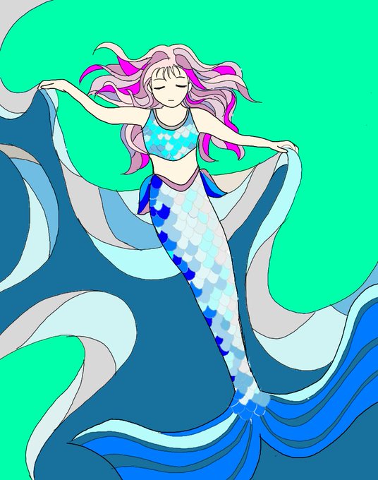 2 14 人魚をイメージして描きました!☺️ 昨日は珍しく積雪 今日も氷点下 部屋から出られない😅 23/01/25 09:32