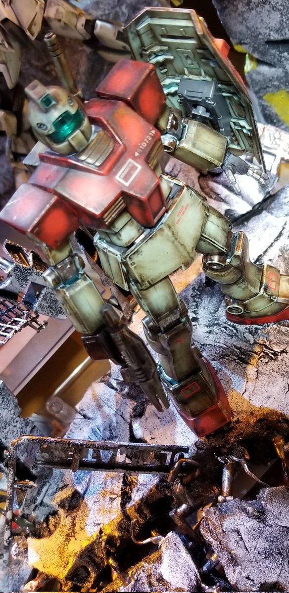 Twitter始めて二週間。ガンプラを通し他のモデラーさんと交流でき、日々楽しく模型活動出来ております。自分一人で眺めてたプラモデル、たくさんの人に見てもらえる喜び、本当にありがとうございます😊 これは以前、汚しに挑戦したジムです😁#ガンプラ #ガンプラ好きと繋がりたい #プラモデル