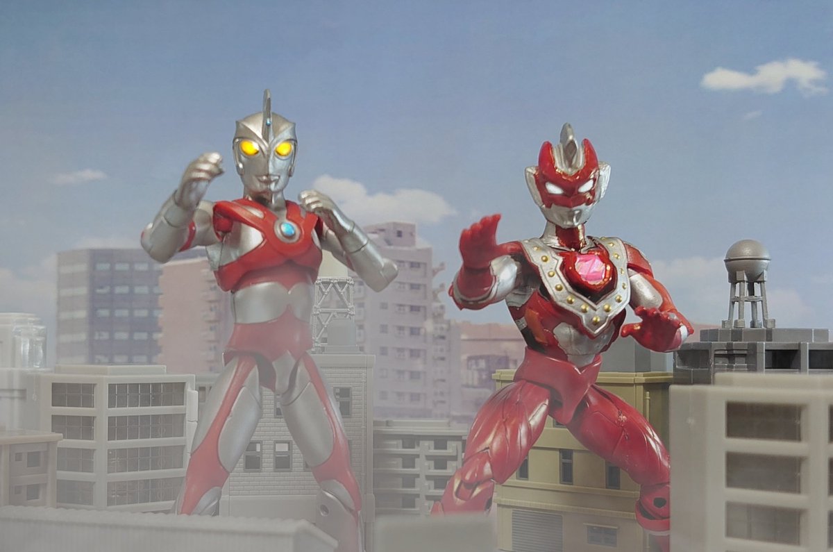 #ちいさな巨大特撮 #おもちゃ撮影会 #ウルトラマンルーブ #ウルトラマングルーブ #ウルトラマントレギア #超動 劇場版ルーブで一番好きなシーンを再現。グルーブの可動域だとこの位が限界ですが…