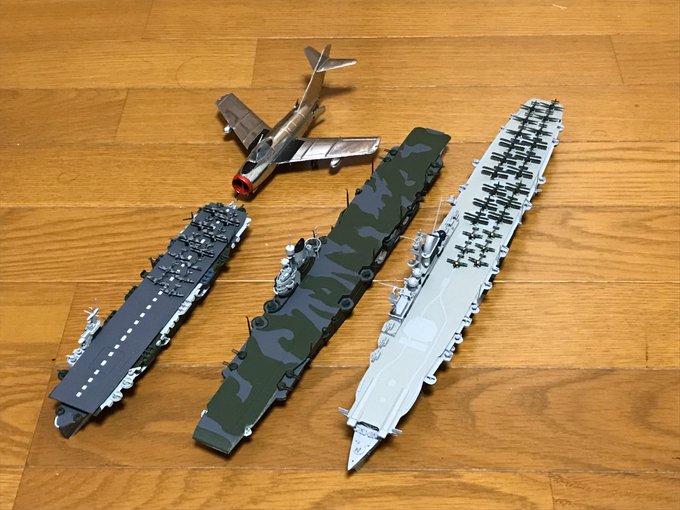 8 95 #今月作ったプラモ晒そうぜ 今月は護衛空母トラッカー、空母ヴィクトリアス、Mig-15、空母グラーフ・ツェッペリンでした。 今月、空母だけだったのね(笑 22/01/30 20:50