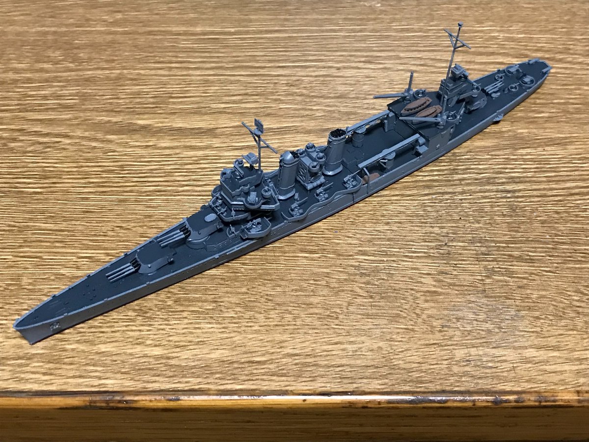 タミヤ改造 1/700 イギリス海軍駆逐艦エコー 前回のエスカペイドに続くE級のバリエーション改装です。今回は後部魚雷発射管を外し高角砲に変更した状態です。前回ほどの改装ではなかったのですんなりといけました。セミスクの高角砲が一番手間かかりました(笑 #艦船模型 #タミヤ