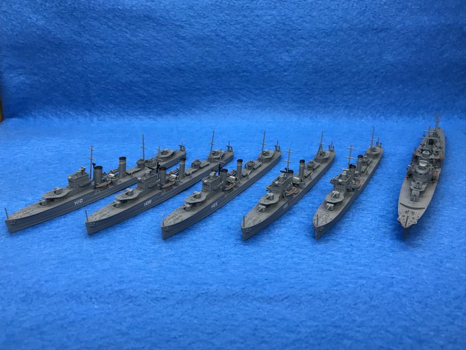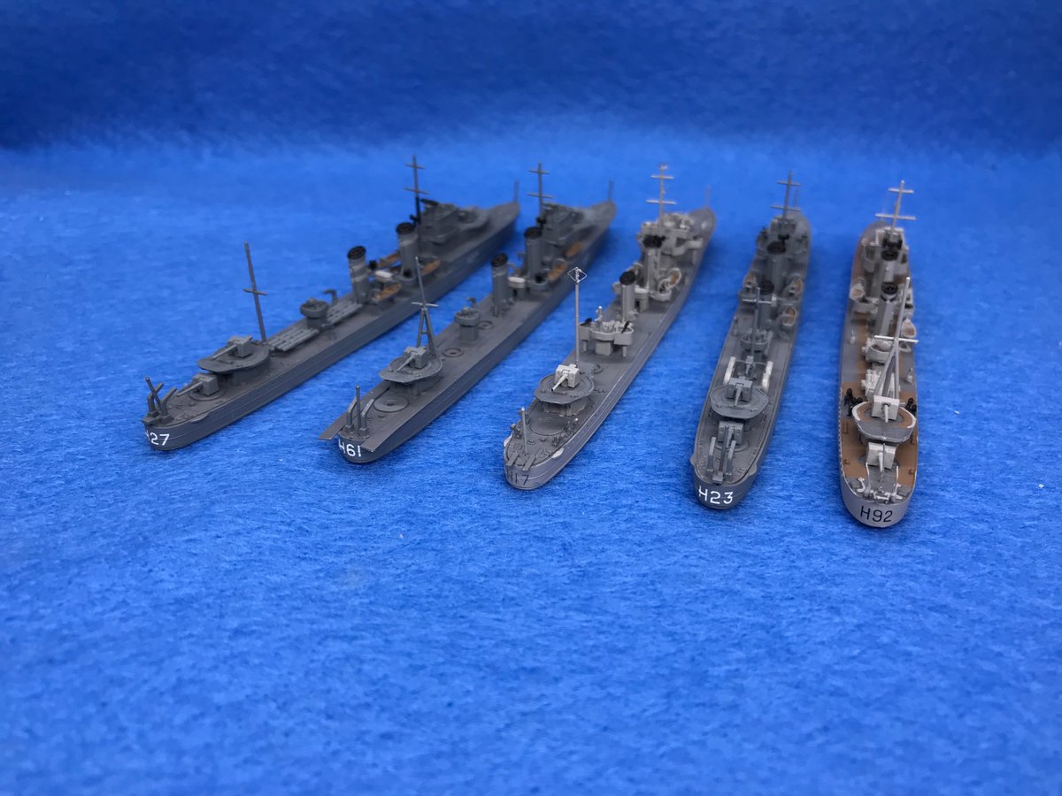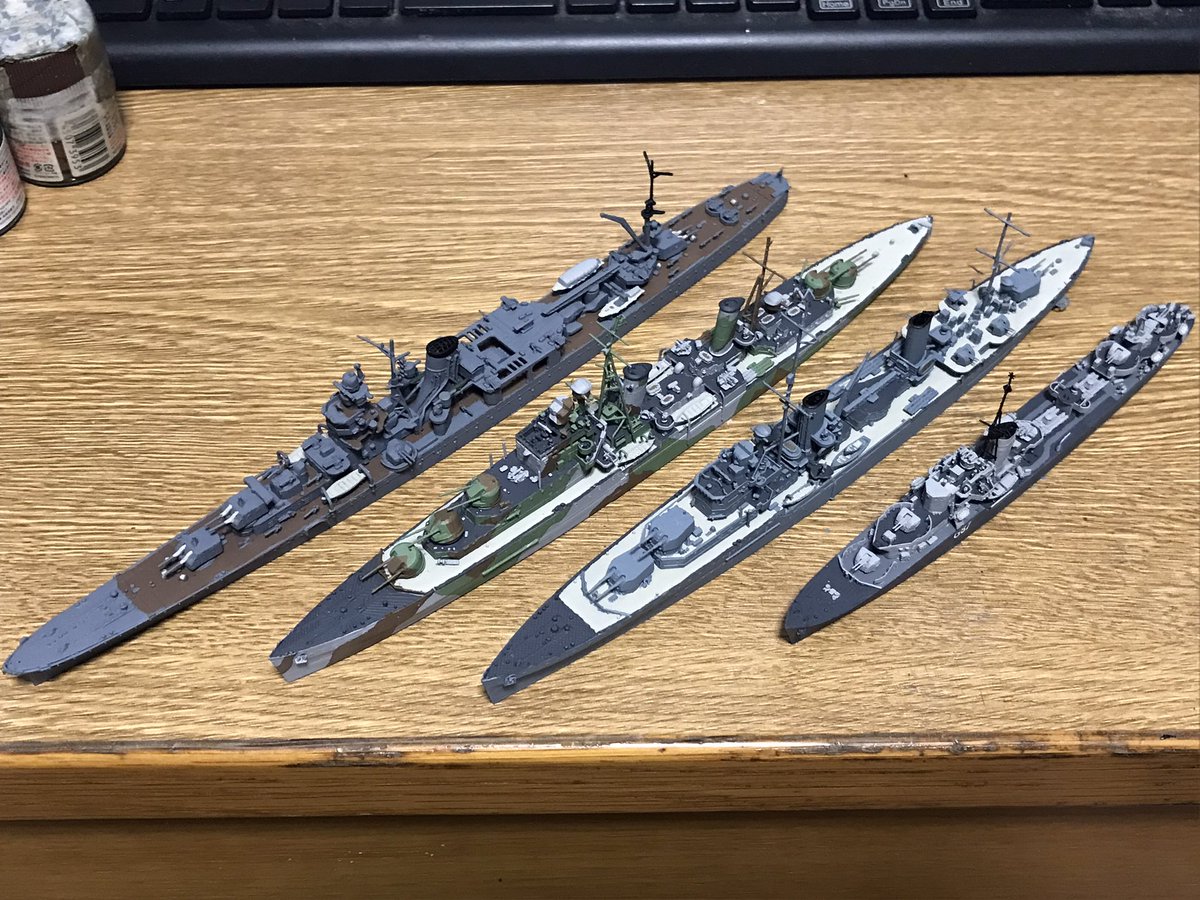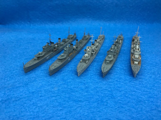 10 69 #今月作ったプラモ晒そうぜ 左から順にエレクトラ、エキスプレス、エスカペイド、エコー、グローウォームの5艦でした。 23/03/31 23:33
