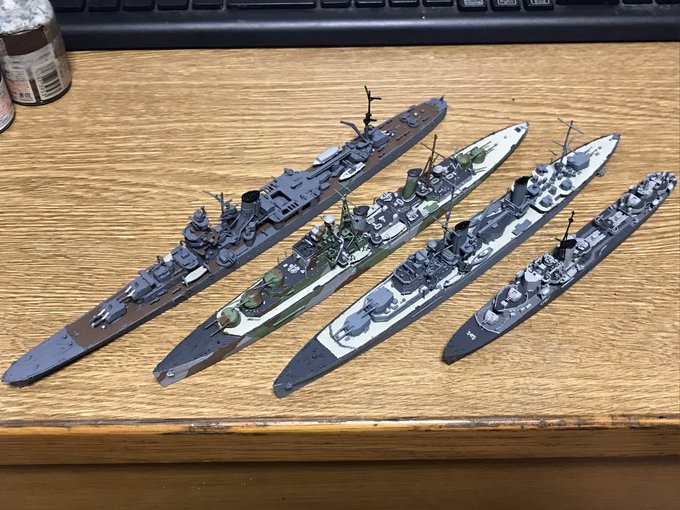 6 111 #今月作ったプラモ晒そうぜ 今月は矢矧、ナイアド、ペネロピ、ランスの4艦でした 22/09/30 23:39