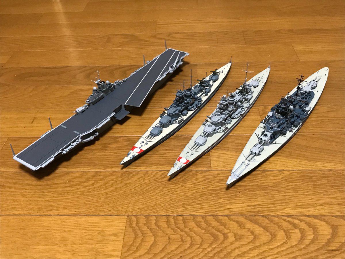 #今月作ったプラモ晒そうぜ 空母オットー・フォン・フリードリヒ シャルンホルスト級戦艦 戦艦ティルピッツ 今月は珍しく大型艦4隻でした('ω')ノ