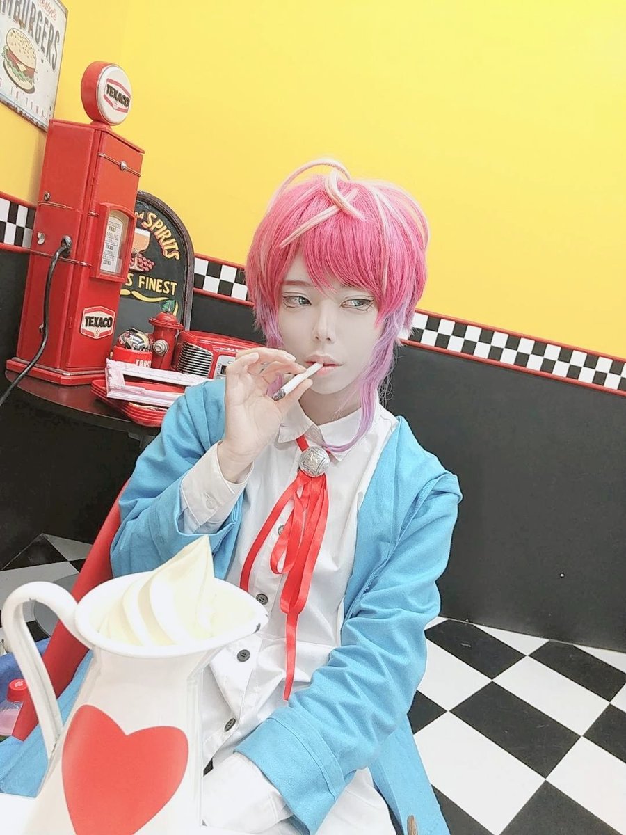 #ヒプマイ好きな人と繋がりたい #コスプレイヤーと繋がりたい #飴村乱数 (宅コス⚠️私服⚠️) またまた宅コス!お姉ちゃんが考えてくれたファッションでラムダちゃんやりました!一枚とても自撮り棒が目立っている写真が…(笑)😅