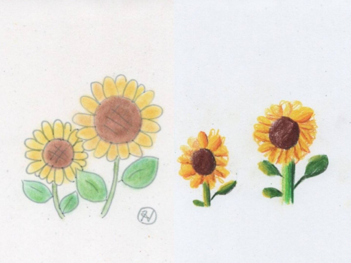 ひまわり🌻 →11歳の娘が色鉛筆で描きました。 10分でこのクオリティはすごいと思う👏 ←私はもっとかかってます💦