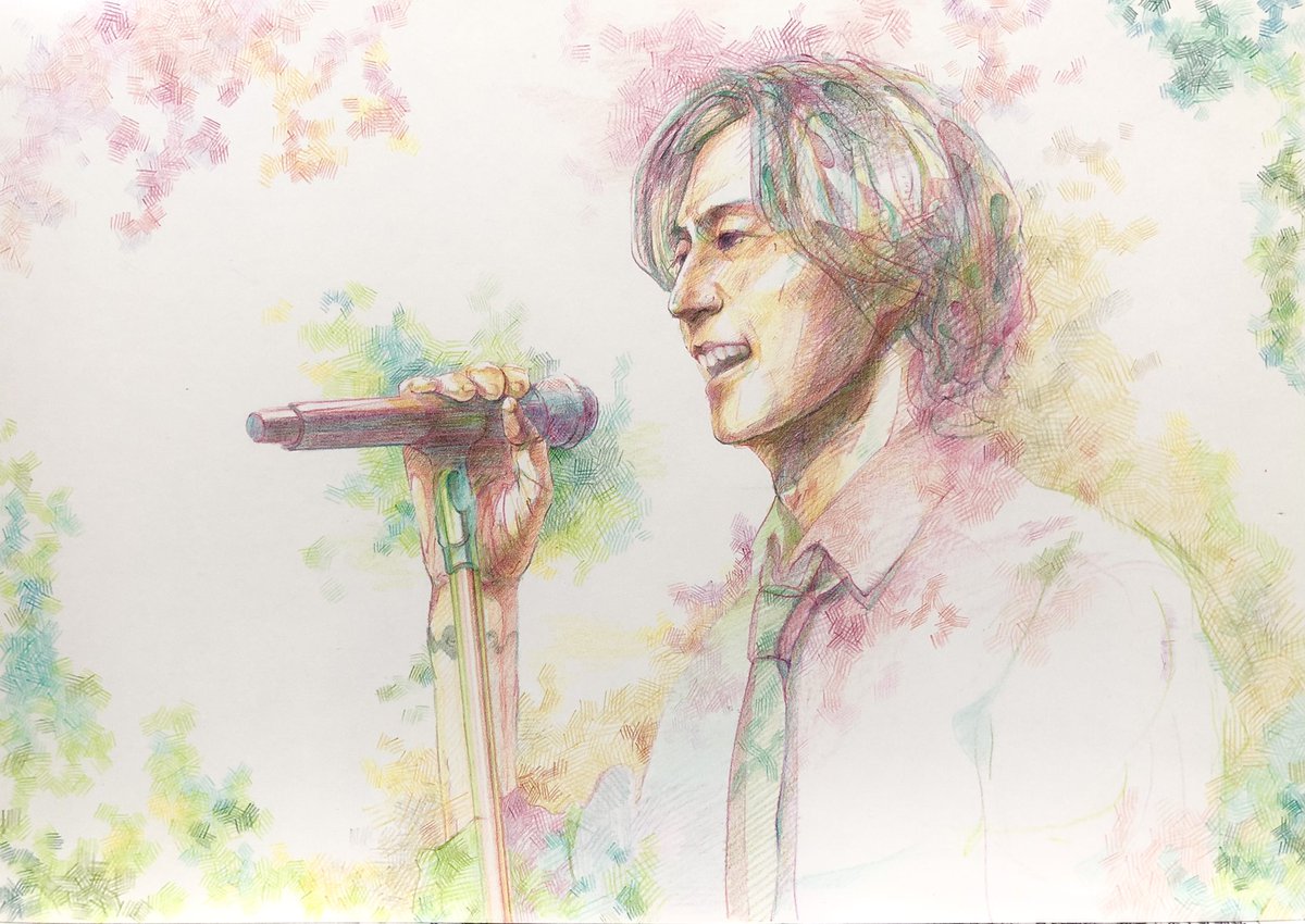 Koshi Inaba #bz #5eras #色鉛筆 配信ライブの稲葉さんを参考に描きました。最高のライブでした。