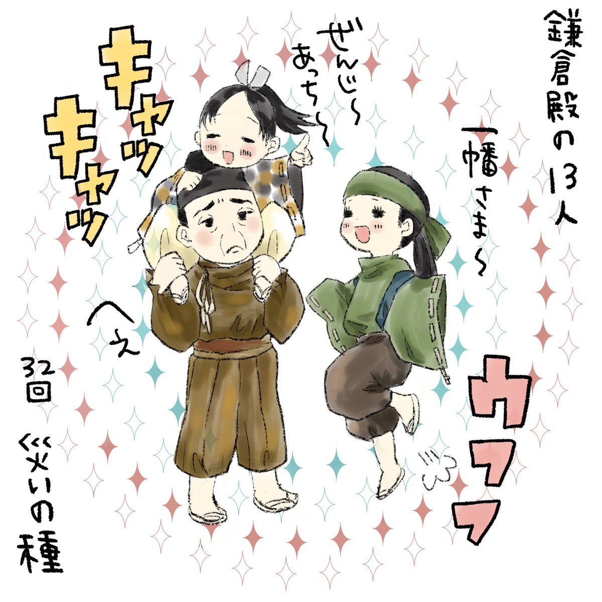泰時が大き過ぎて二人がミニチュアに見えた #鎌倉絵 #殿絵