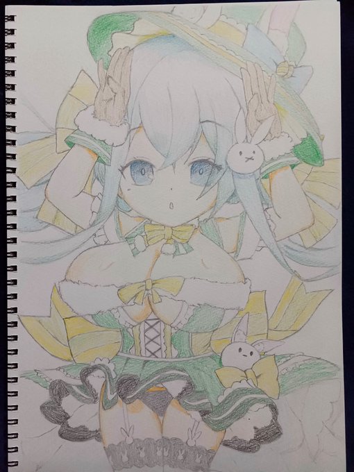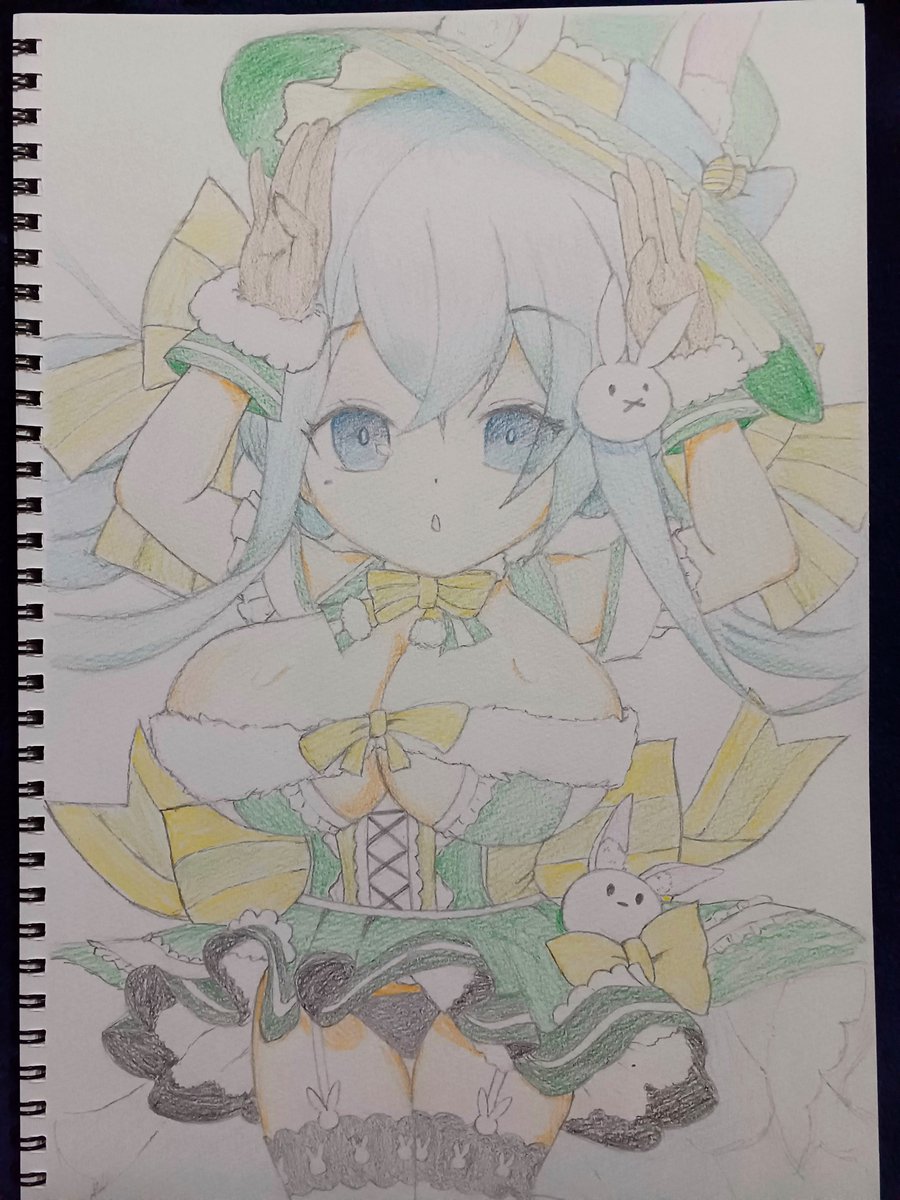 0 2 #アナログイラスト #アナログ絵描きさんと繋がりたい #初音ミク #色鉛筆 22/06/08 00:23