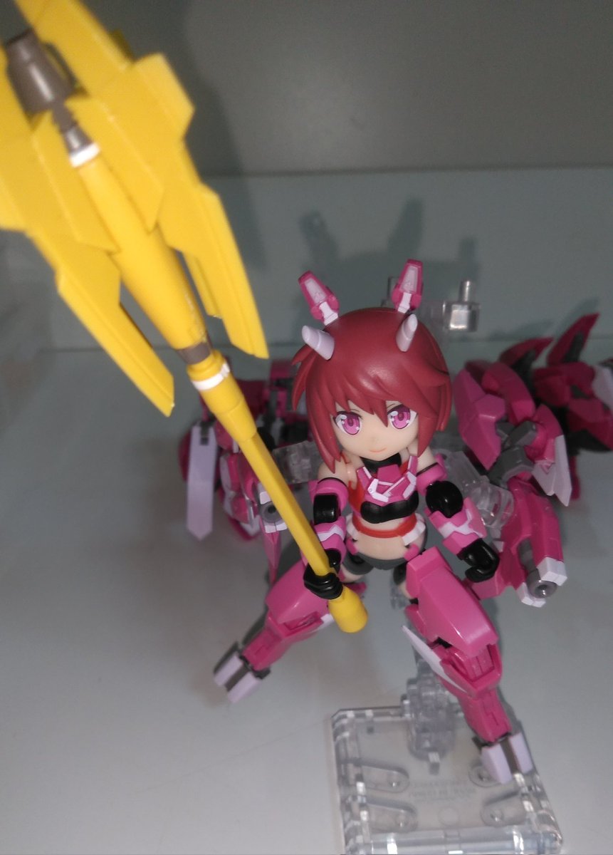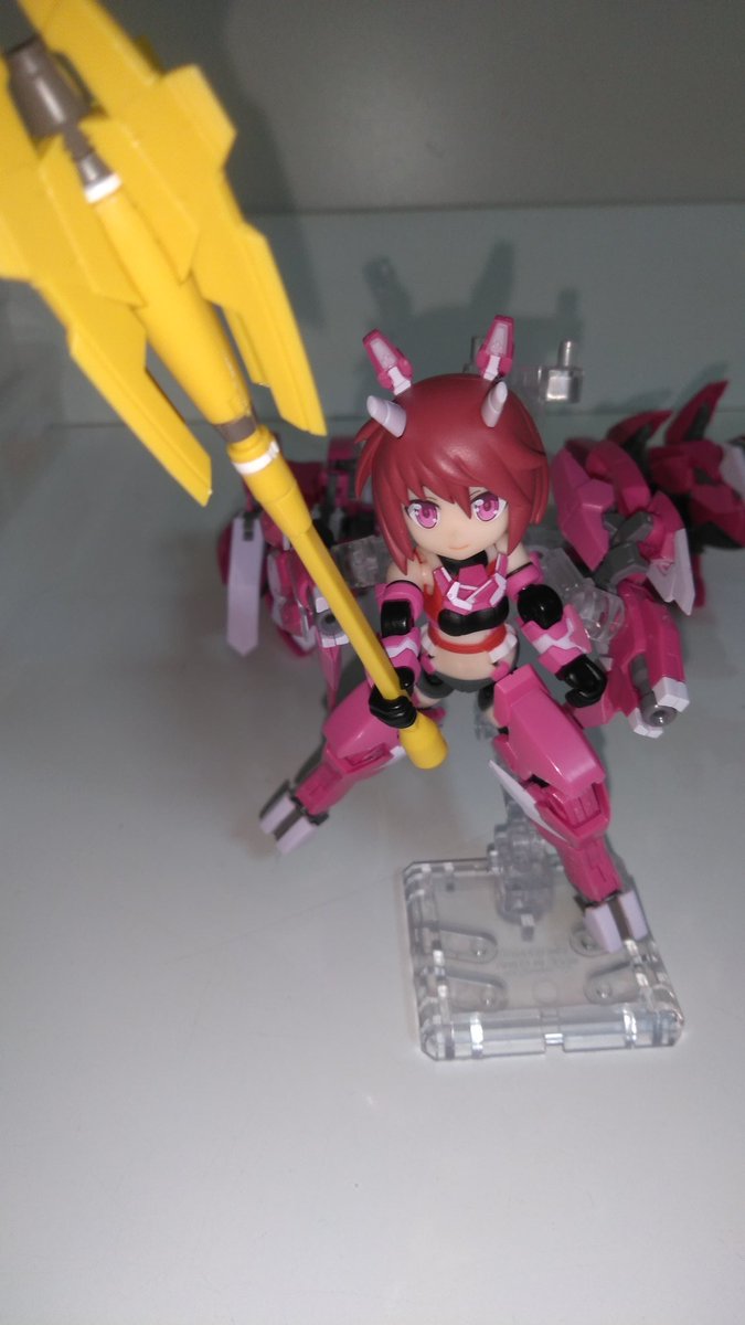 おはョ! DTA重兵装型女子高生、パチ組。 ウチのコはイオンと命名。 脚部は素体と差し替え。髪はペコリーヌ同様可動。 黒✕赤✕金基調の配色がセンス良◎ 瞳のタンポ印刷もレベル高し。 2000円でこのクオリティ。超おすすめです! 3個まとめ買っとけばよかったな(反省) #デスクトップアーミー