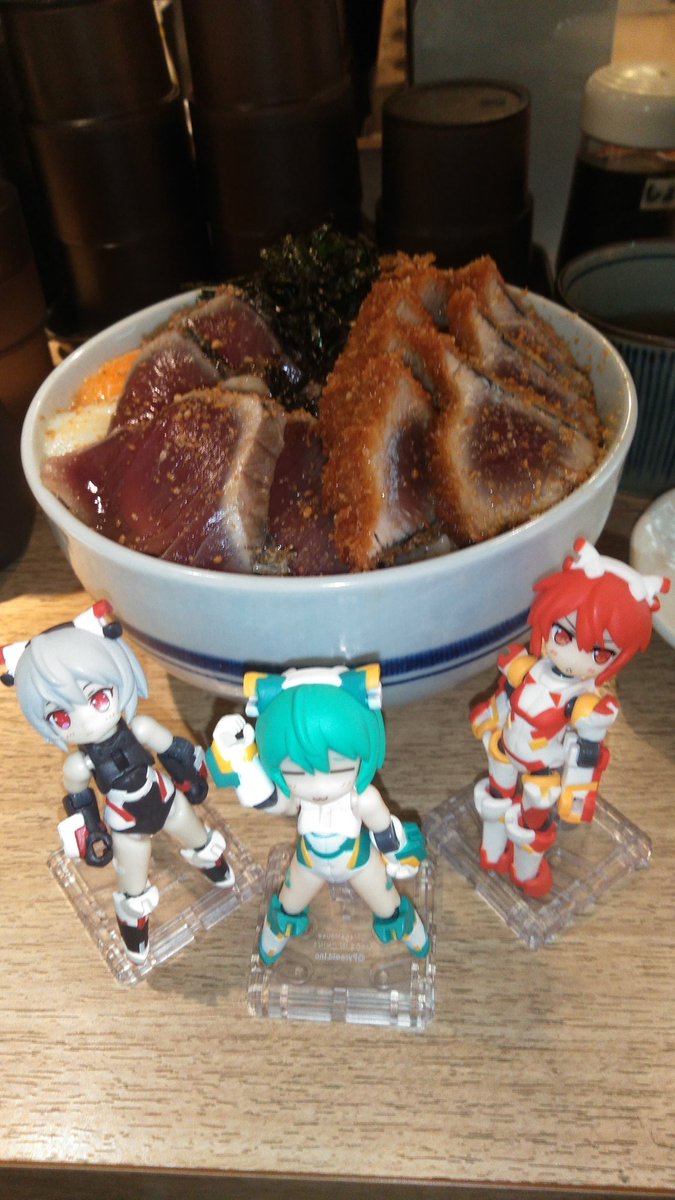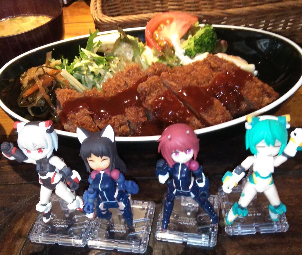 今日は5スロでシンフォギアを打って辛くも500円浮きw 昼はいつものウイングさんでチーズイン豚ヘレカツ定食を食べました。 幸せすぎる味に感謝! 新生シルフィー小隊を添えて #デスクトップアーミー
