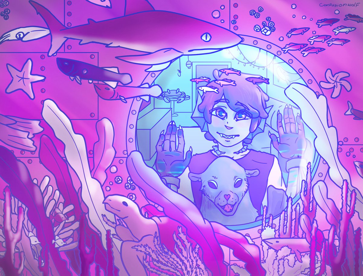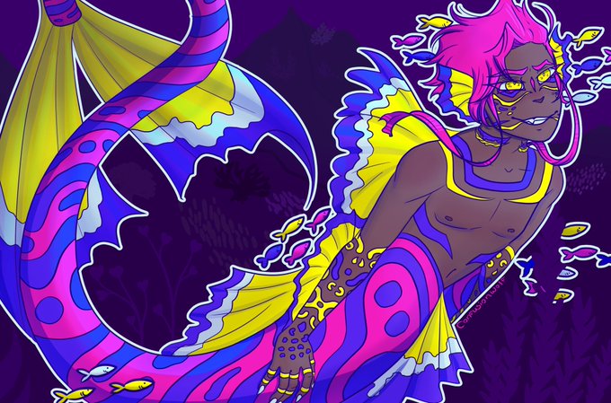 I really wasn't feeling up to it this mermay so here is a piece I actually made quite a while ago of my fishy boy character Basstian he has a pet sea lion named Slippy #mermay #mermay2022 #merman #digitalart