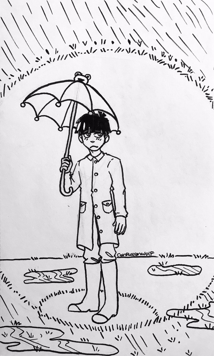 Day 10 umbrella I drew my favorite boy Mob from my favorite anime mobpsycho100 it’s so good and mob I so precious #inktober #inktober2020 #inktober2020day10 #mobpsycho100
