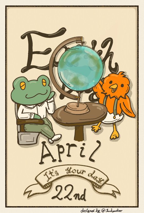 本日、4月22日はアースデイ! 誕生日の人、おめでとう! 続けられるだけ毎日 バースデーカード描き続けます。 #一日一絵 #絵描きさんと繋がりたい #カレンダー