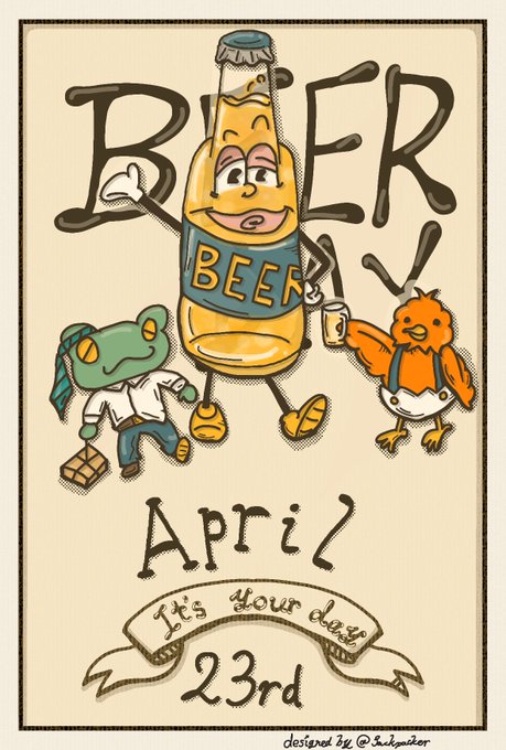本日、4月23日は地ビールの日! 誕生日の人、おめでとう! 続けられるだけ毎日 バースデーカード描き続けます。 #一日一絵 #絵描きさんと繋がりたい #カレンダー