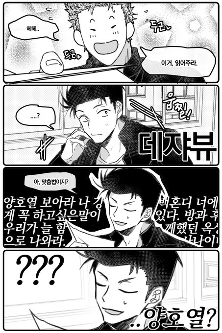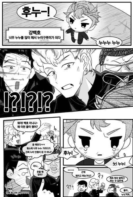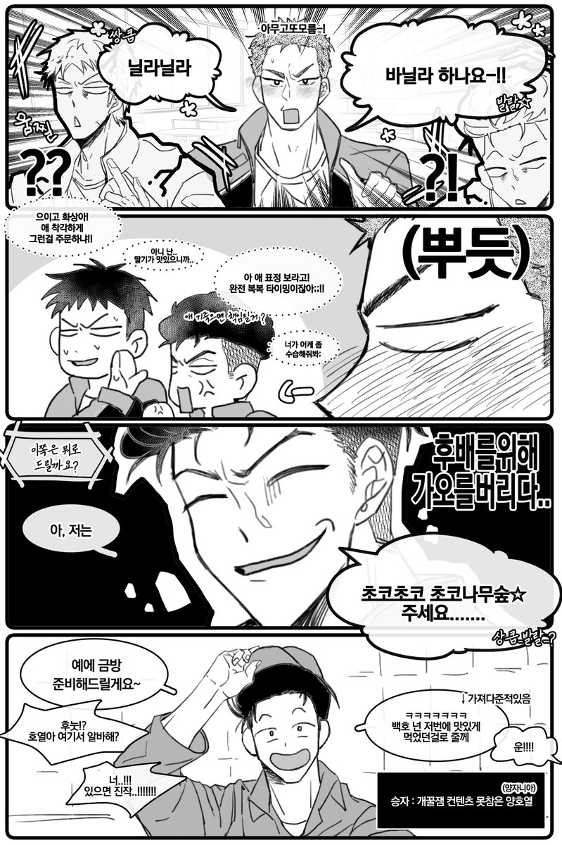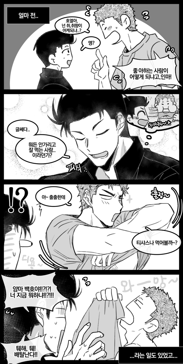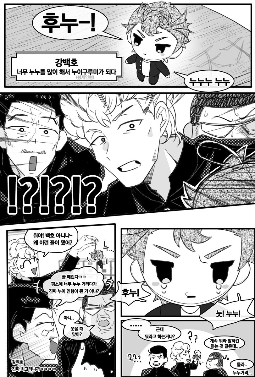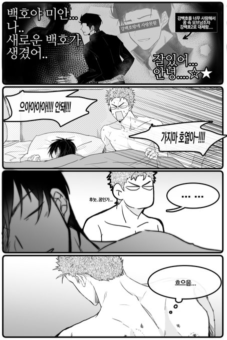 #호열백호_전력60분 @10x100_60 대차게 지각하기...ㅠㅠ 호백의 커퀴짓에 애먼놈들이 도망치는내용으로 참여합니다.. (*호백 커퀴짓은 거침없이 하이킥 에피소드를 활용했어요!!)