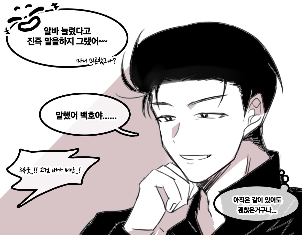 #호열백호_전력60분 @10x100_60 #백호야_축하해_TFF 쵱컾 만화도 챙기고 싶어서 주제 생일로 저렴하게 참여합니다...ㅠ!!! 호열이 자리를 만들어주는 배코가 보고싶었어요🎂🍰