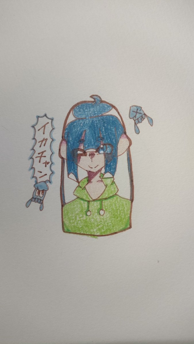 色鉛筆で色塗った! イカちゃん! #イラスト #オリキャラ #スプラトゥーン #オリイカ #下手