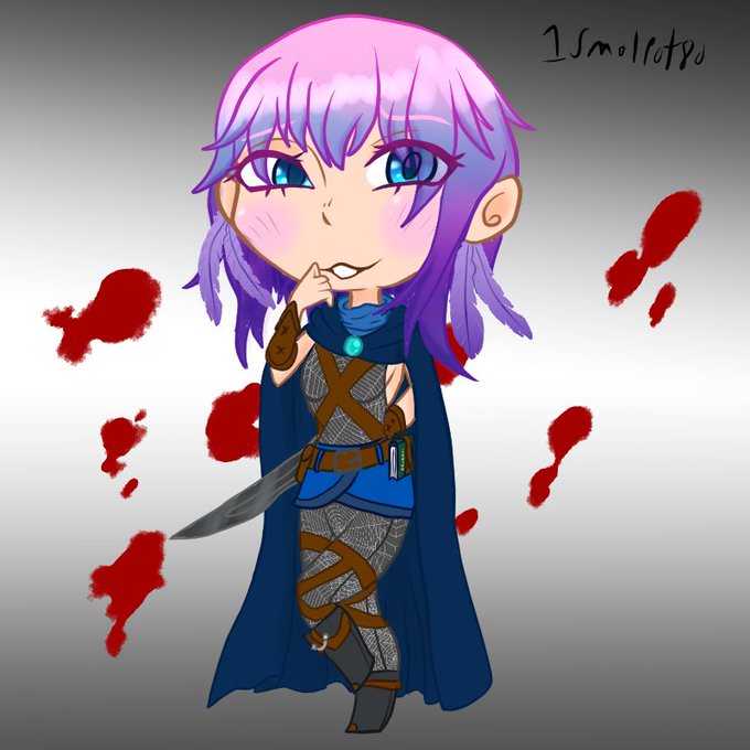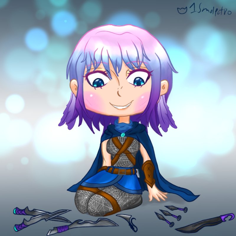 I got commissioned to draw Ari again who is my friends DnD character! Look at her admiring her weapons so sweetly! #drawing #art #dnd #dndart #DnDcharacter #DNDArtist #chibiart #chibi #characterart