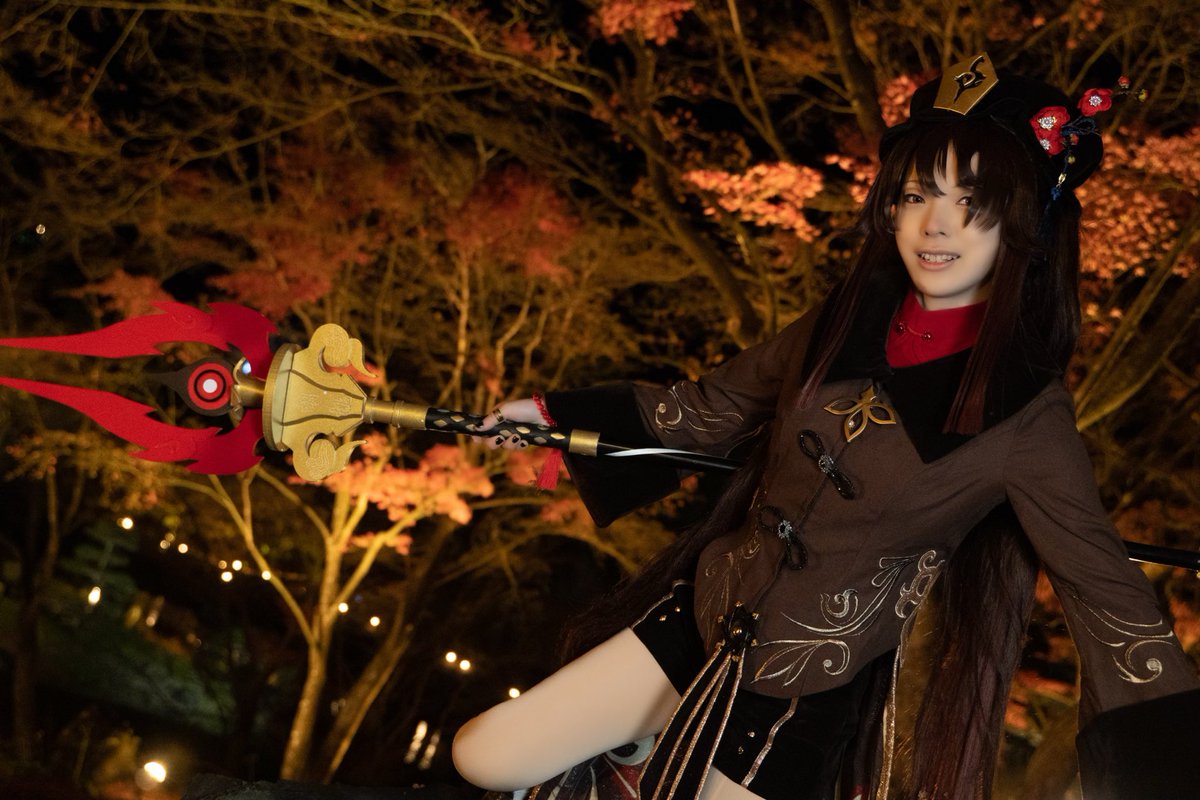 コスプレ/原神 胡桃 •┈┈┈┈┈┈┈┈┈┈┈┈┈┈┈┈• へへへ、 お月様が出てきたよ~外で見よう! •┈┈┈┈┈┈┈┈┈┈┈┈┈┈┈┈• photo:アシタさん(@ashita1114 ) #るあのテイワットレコード #虹コス
